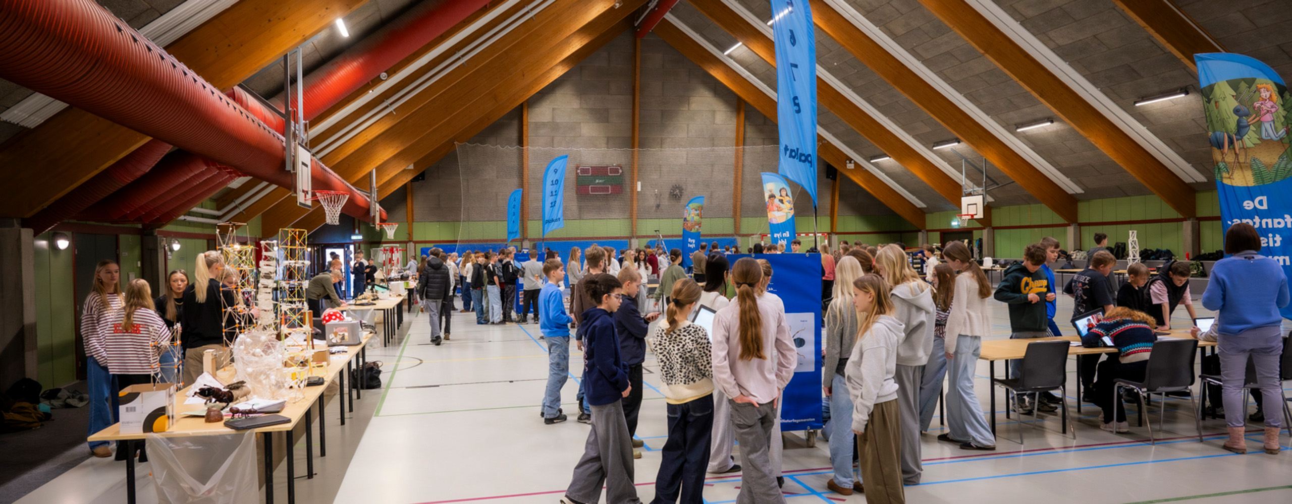 Konkurrencen bliver sat i gang, og eleverne fordeler sig rundt i hallen. Nogle gør sig klar til at præsentere deres løsninger for dommerne, mens andre løser de naturfaglige aktiviteter, der er stillet op.