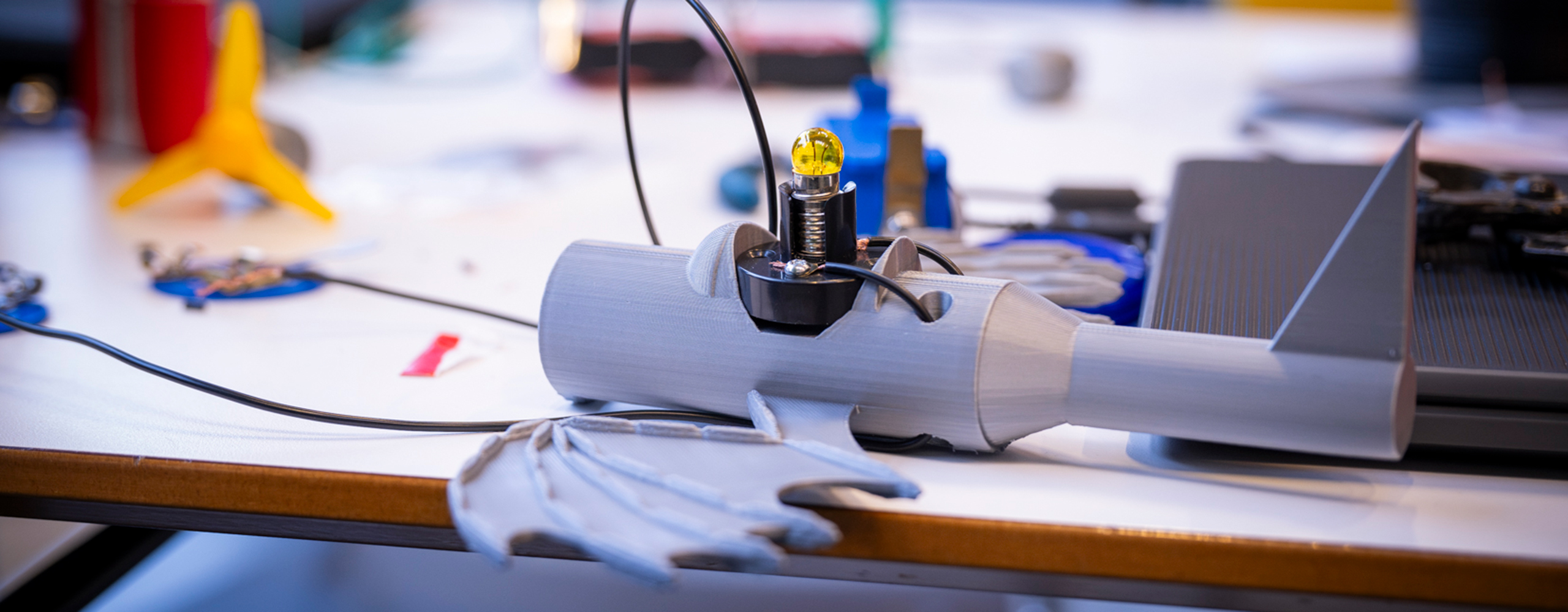 – Mit første element gik galt, da jeg printede det. Så jeg printede forskellige udgaver og fandt til sidst en god løsning, fortæller Ruben og fortsætter med at redegøre for, hvor mange volt batterierne har, og hvilken pære de har brugt.